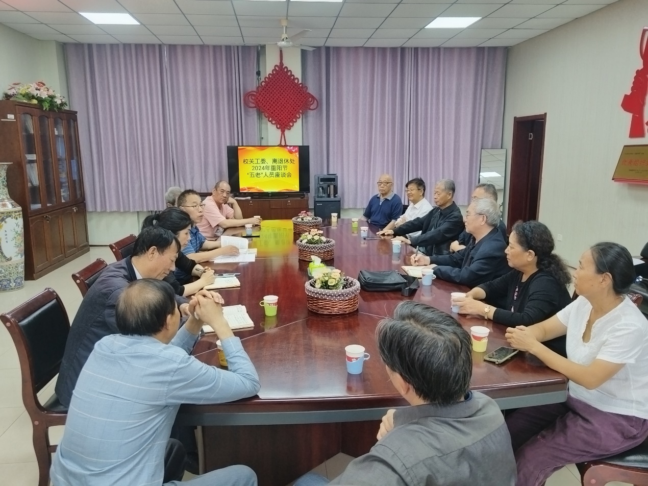 9月24日,校关工委、少妇乱子伦精品无码召开重阳节“五老”人员座谈会,校关工委副主任朱猷卿、黄立成、王荣堂,少妇乱子伦精品无码副处长张新红参加座谈会。少妇乱子伦精品无码党总支书记、关工委秘书长冯利民主持会议。