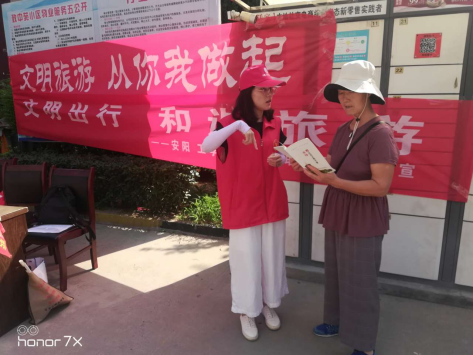 活动中,党员志愿者在广顺社区开展“文明出行 和谐旅游”主题宣传教育活动,在人员流动大的区域发放宣传资料。发放《安阳市民文明手册》和旅游宣传册(单)100余份,面对面向群众宣传文明公约,倡导广大市民从自身做起、从小事做起,做文明的守护者和传承人。
