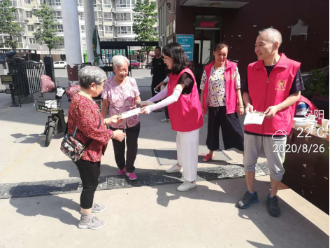 党员志愿者向社区居民发放宣传手册