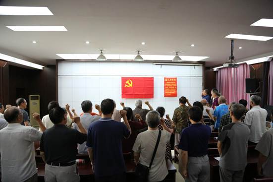 演唱结束后,全体党员面对党旗重温入党誓词,展现了离退休老党员们不忘初心、牢记使命、积极进取的良好精神风貌。