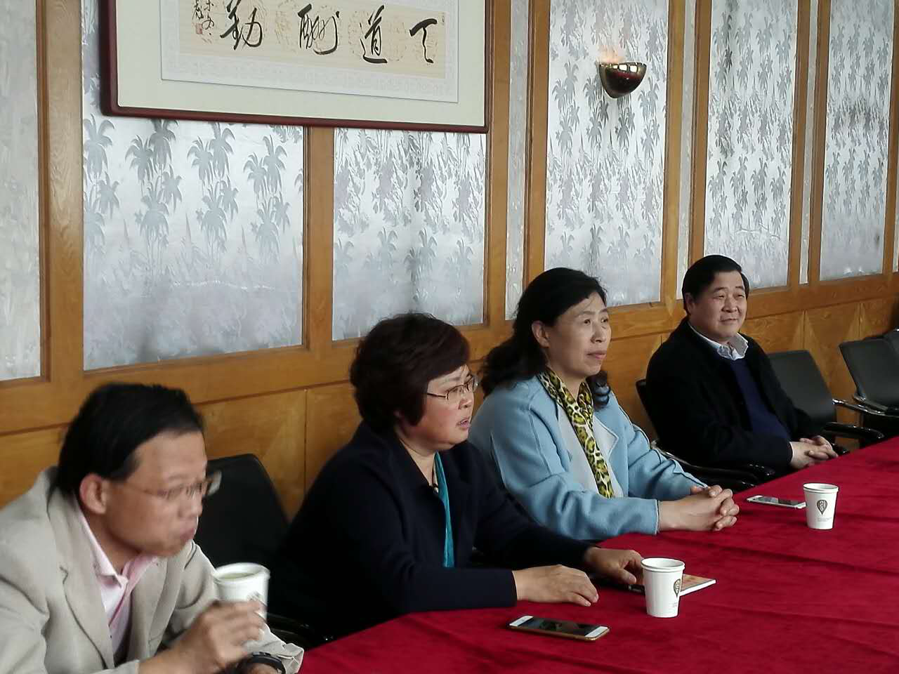 图为我处张想竹处长在和河南几所高校老干处负责人交流离退休工作