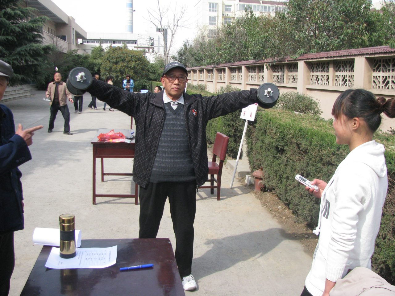 图为举杠铃比赛现场