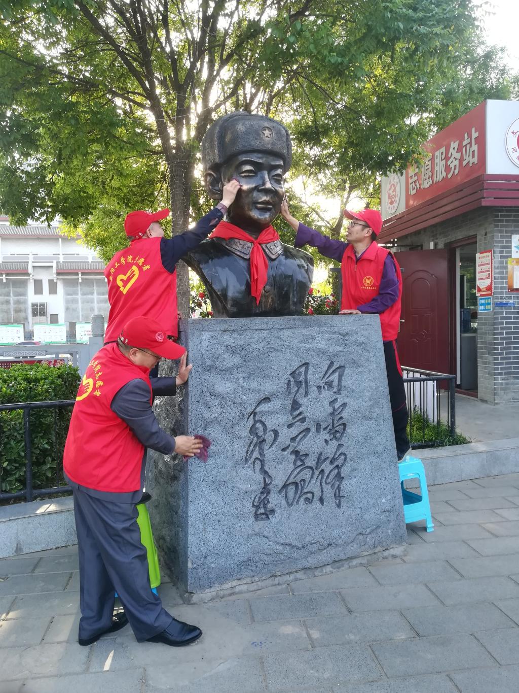 认真擦拭雷锋肖像
