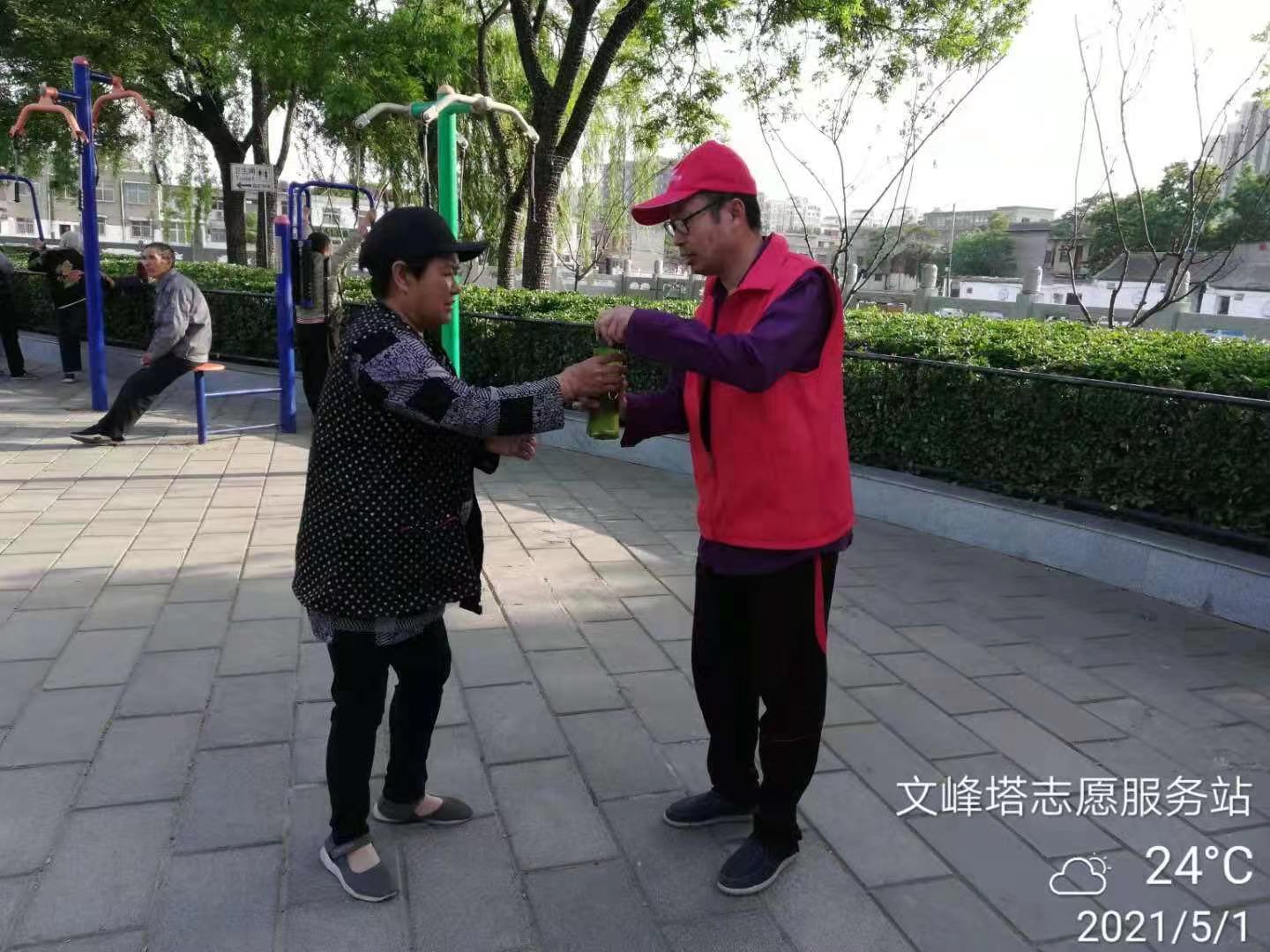 5月1日,离退休职工工作处一行5人赴安阳市学雷锋服务站开展志愿服务活动。在服务站为广大市民做道德文化宣传,传承发扬雷锋精神、志愿服务精神。热心帮助需要帮助的市民,为防止烫伤帮助小朋友们接热水;为路边走累的老人送上板凳,以便他们坐下休息;为维护广场及周边环境卫生,用手捡拾地上垃圾放入垃圾箱;擦拭雷锋肖像;协助市民测量血。此次活动用实际行动践行雷锋精神,受到广大市民的欢迎。
