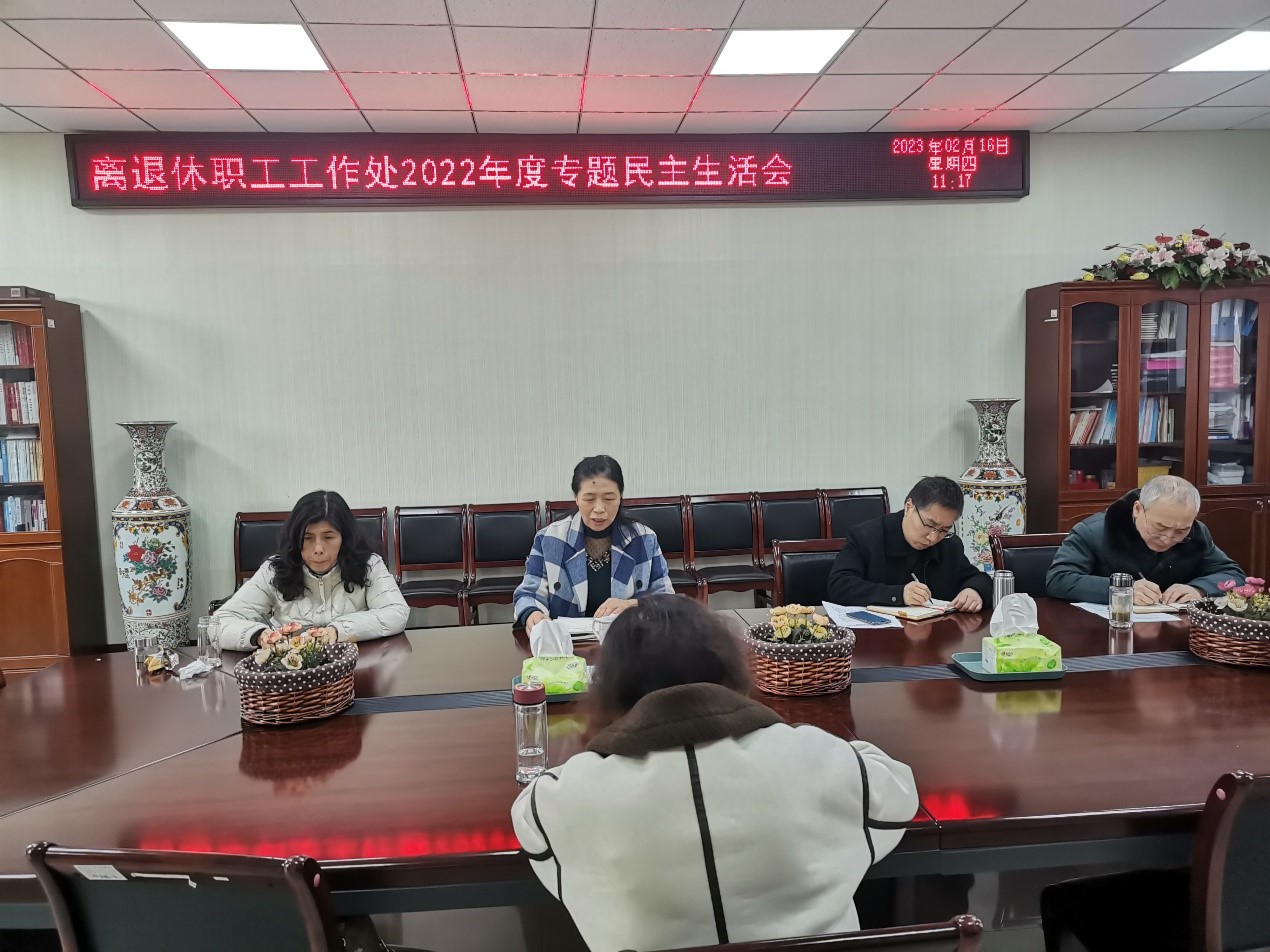 2月16日,离退休职工工作处党总支在关工委办公室召开2022年度党员领导班子民主生活会,处领导班子参加会议,会议由党总支书记张想竹同志主持。