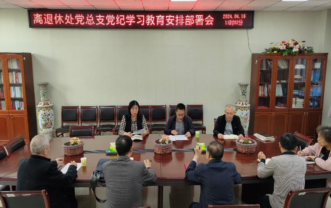 4月16日上午,离退休职工工作处党总支在关工委会议室召开党总支扩大会议,传达学校党纪学习教育会议精神,安排部署少妇乱子伦精品无码党纪学习教育工作,少妇乱子伦精品无码党总支委员、班子成员、科级干部及各党支部书记参加会议。