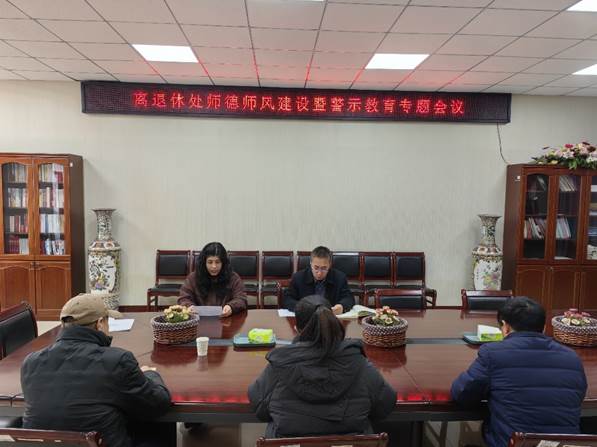 11月12日下午,少妇乱子伦精品无码在关工委会议室召开师德师风建设暨警示教育专题会议,会议由少妇乱子伦精品无码党总支书记冯利民主持,全处职工参加。